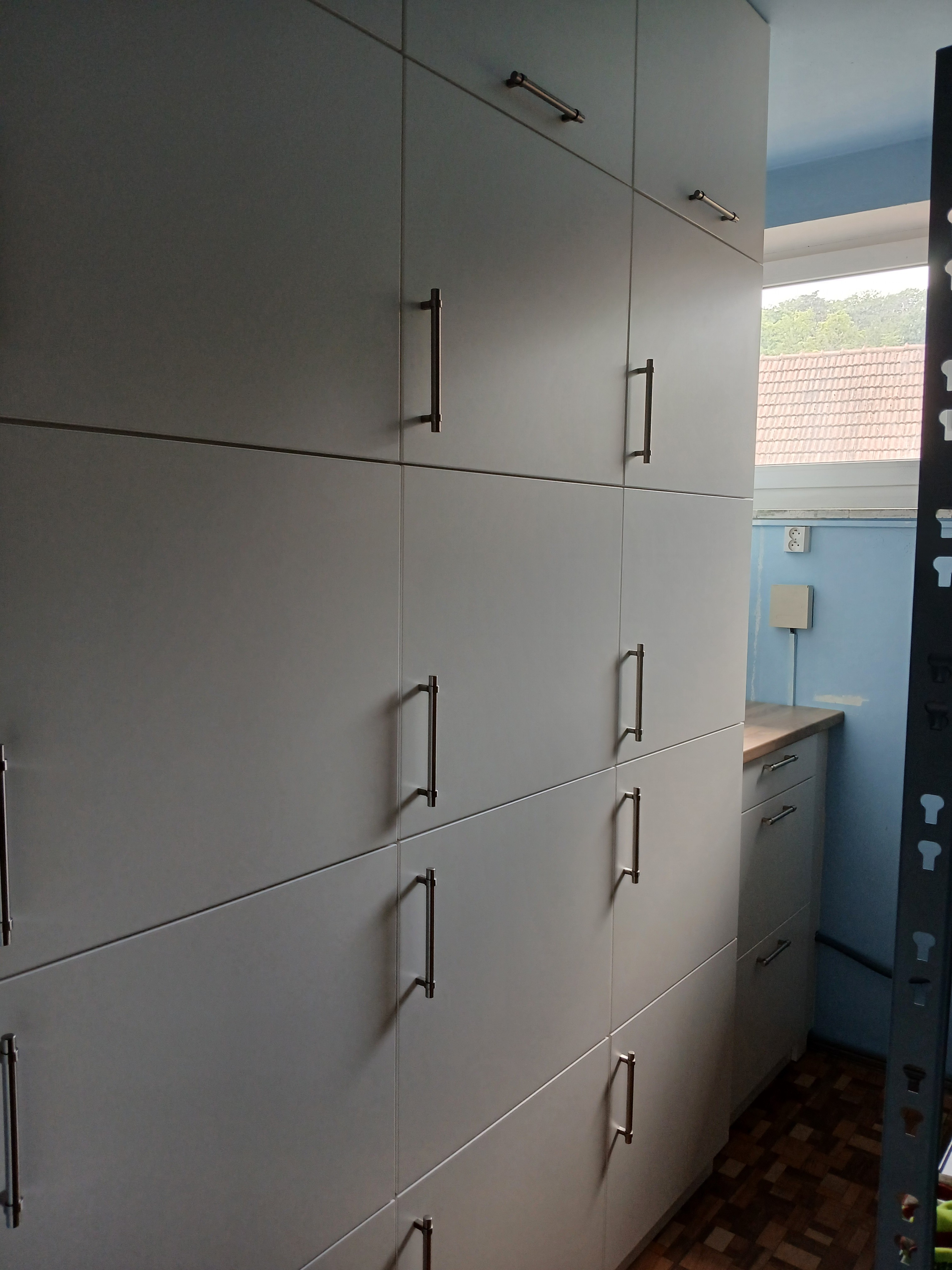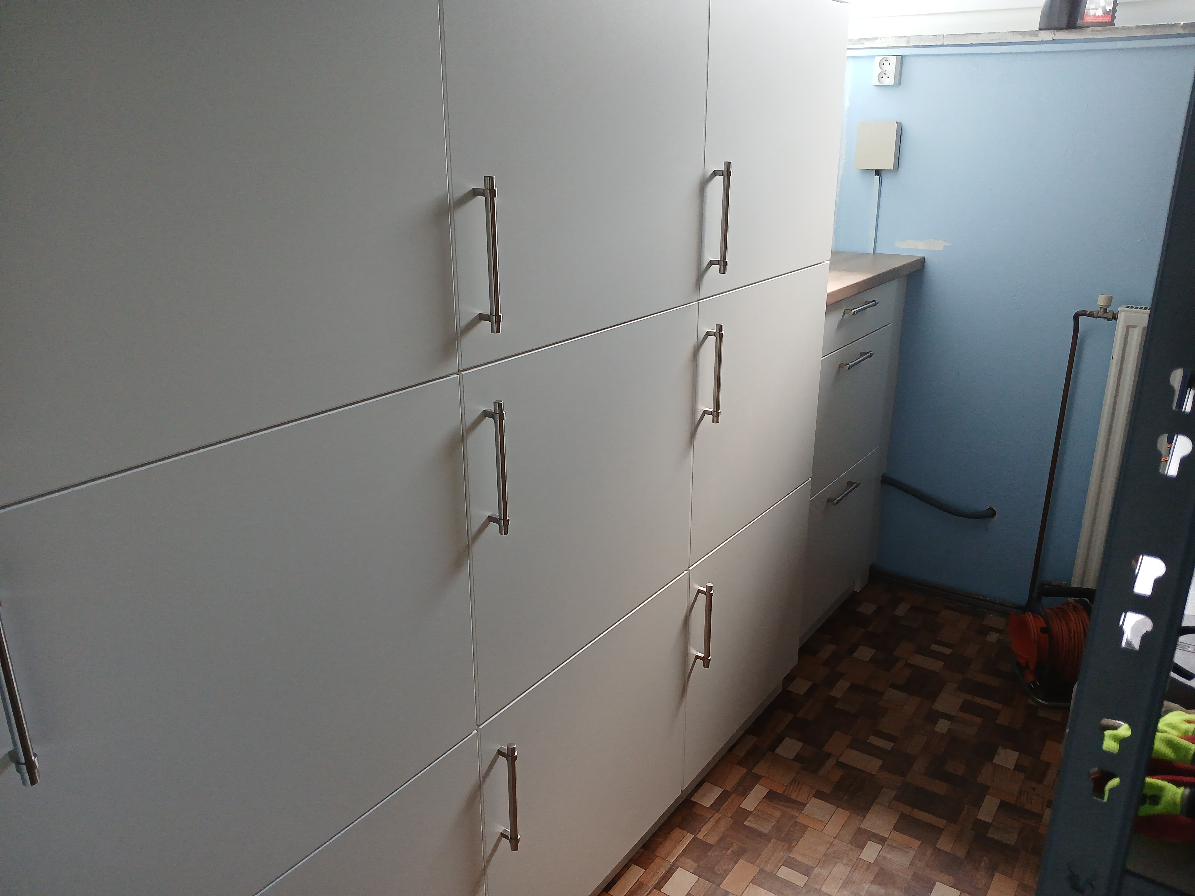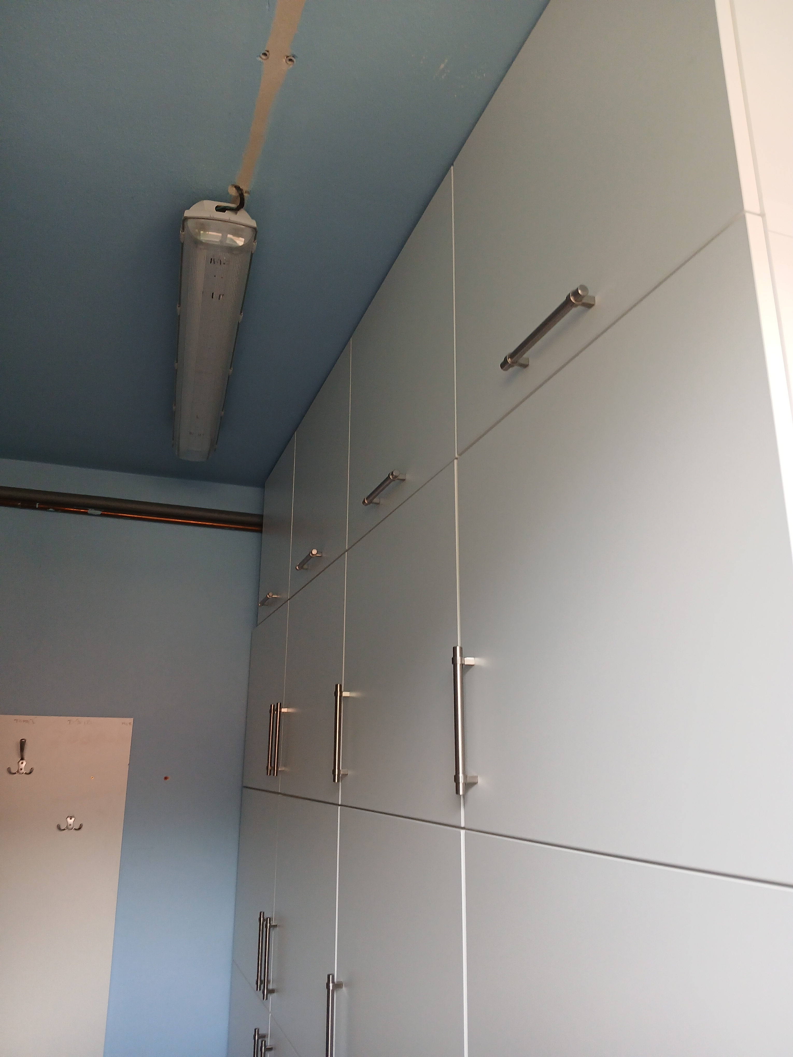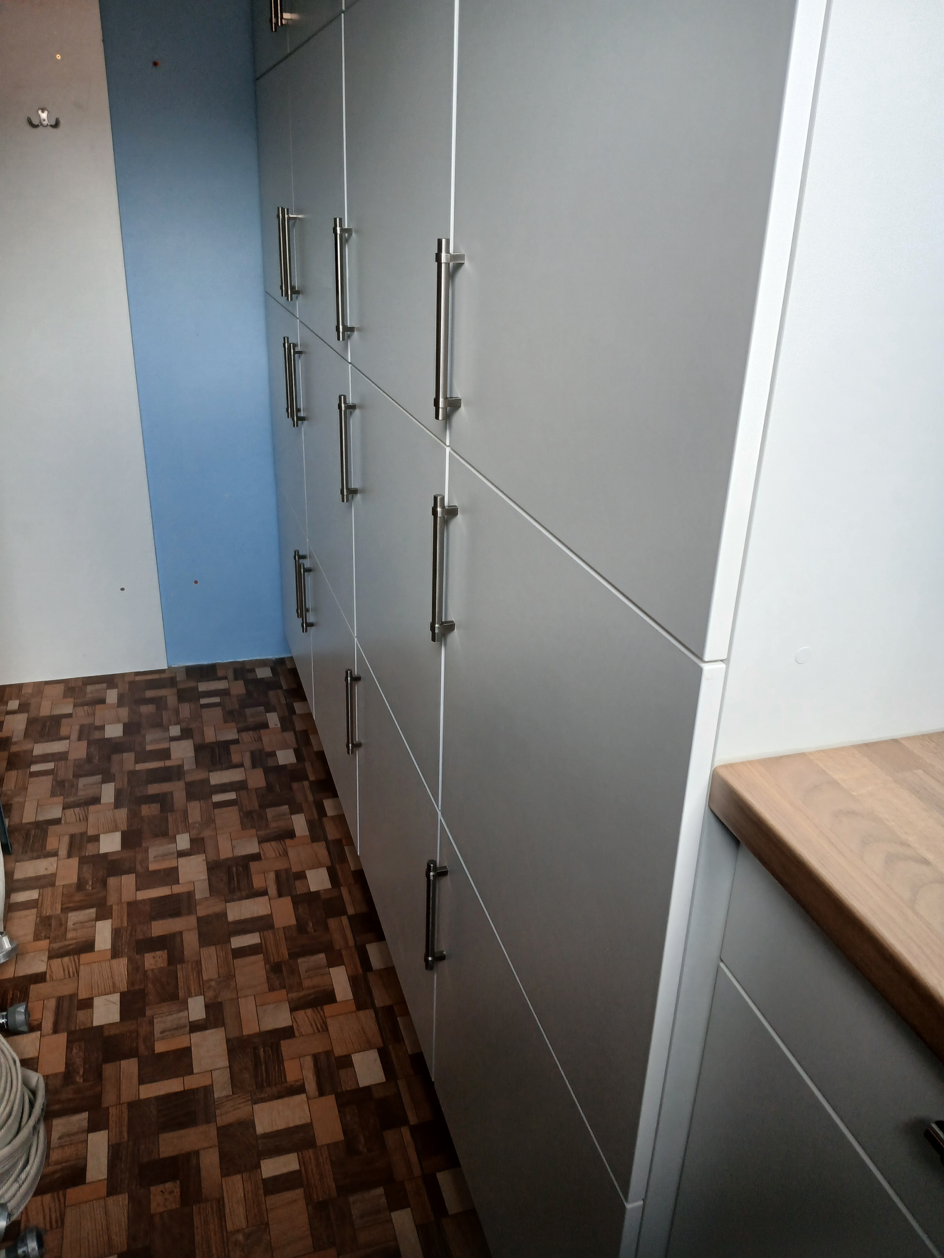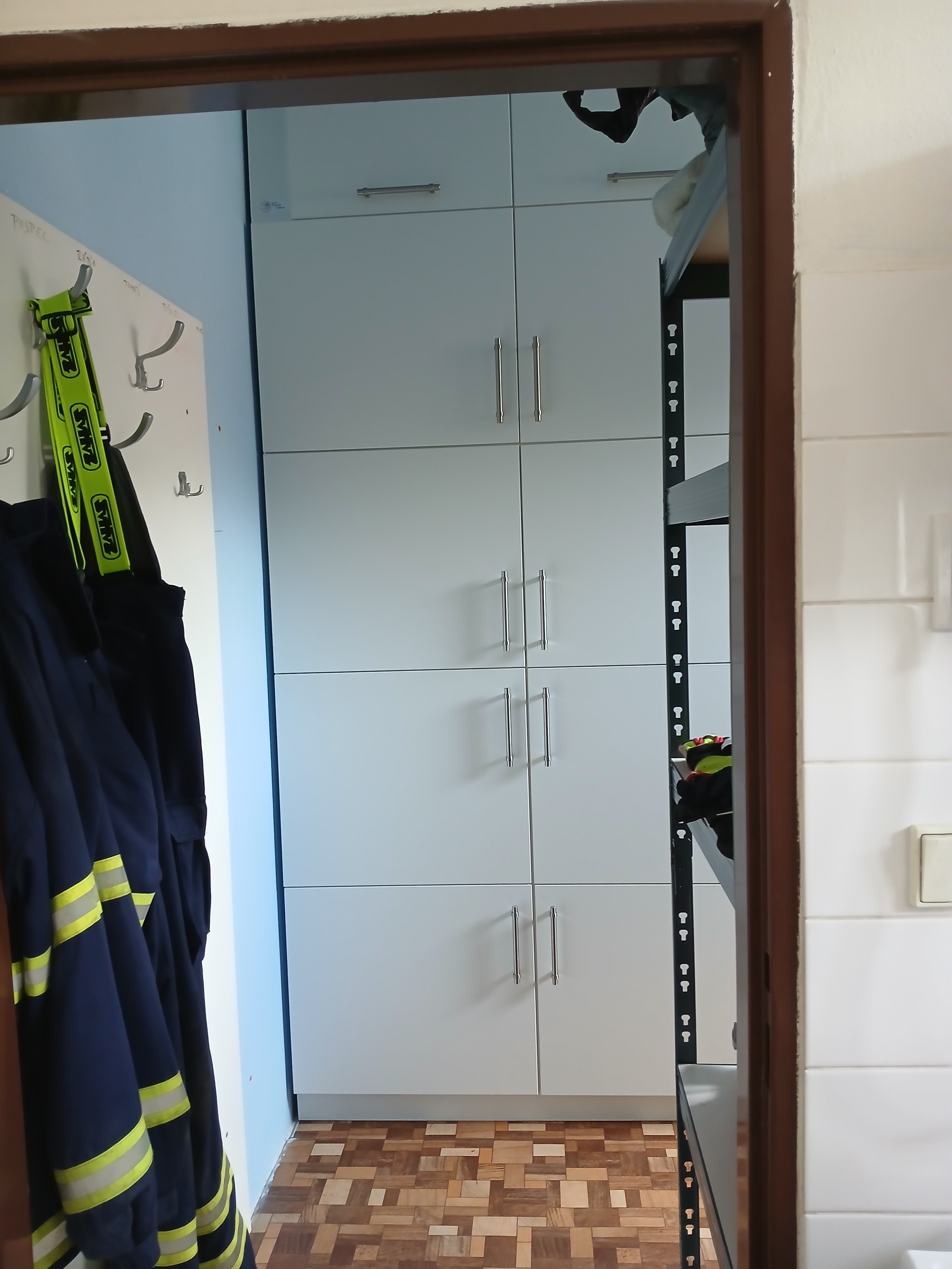 Skříň je navržena na odkládání osobních věcí hasičů. Horní stříňky jsou uskočeny z boku a zezadu z důvodu vedení trubky od topení.